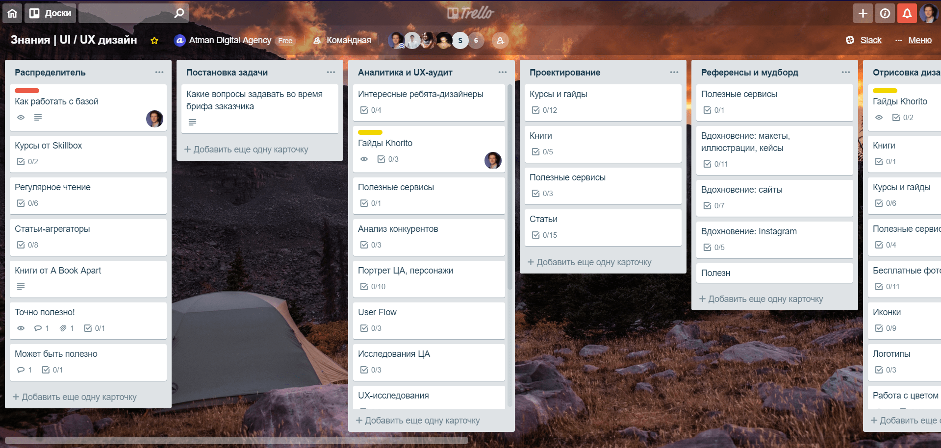 Так выглядит база знаний по UX / UI в Trello.