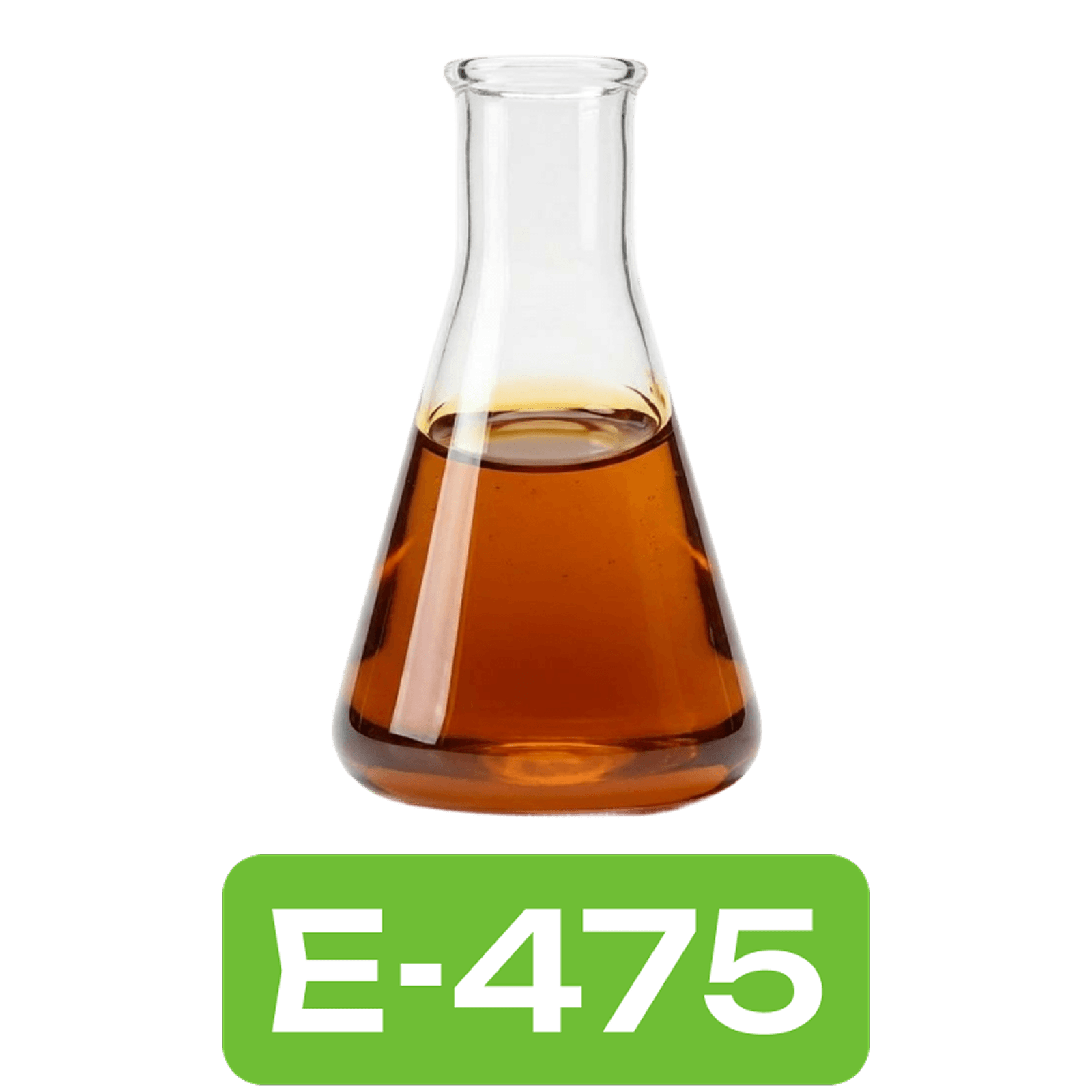 Ключевое отличие — в химической структуре. E475 представляет собой сложные эфиры полиглицеридов и жирных кислот, где полиглицериды — это цепочки из нескольких молекул глицерина. E471 (моно- и диглицериды жирных кислот) имеет более простую структуру, основанную на одной или двух молекулах глицерина. Более сложное строение E475 часто обеспечивает лучшие эмульгирующие и стабилизирующие свойства. Обе добавки применяются в схожих продуктах: выпечке, кремах, маргаринах, но E475 может быть более эффективной в сложных рецептурах. Другим примером эфирного эмульгатора является E472a (эфиры глицерина, уксусной и жирных кислот).
