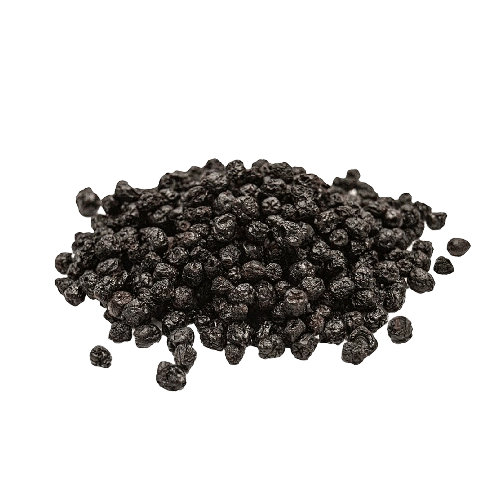 Продукт, полученный в результате высокотехнологичного процесса сублимационной сушки (лиофилизации). Свежие ягоды черноплодной рябины (аронии) сначала подвергаются глубокой заморозке, а затем влага удаляется в вакуумной камере, минуя жидкое состояние. Этот процесс позволяет сохранить уникальный терпкий вкус, насыщенный темный цвет, форму и максимальное количество полезных веществ свежей ягоды. В результате получаются легкие, хрустящие и полностью натуральные ягоды без добавления консервантов или сахара.
