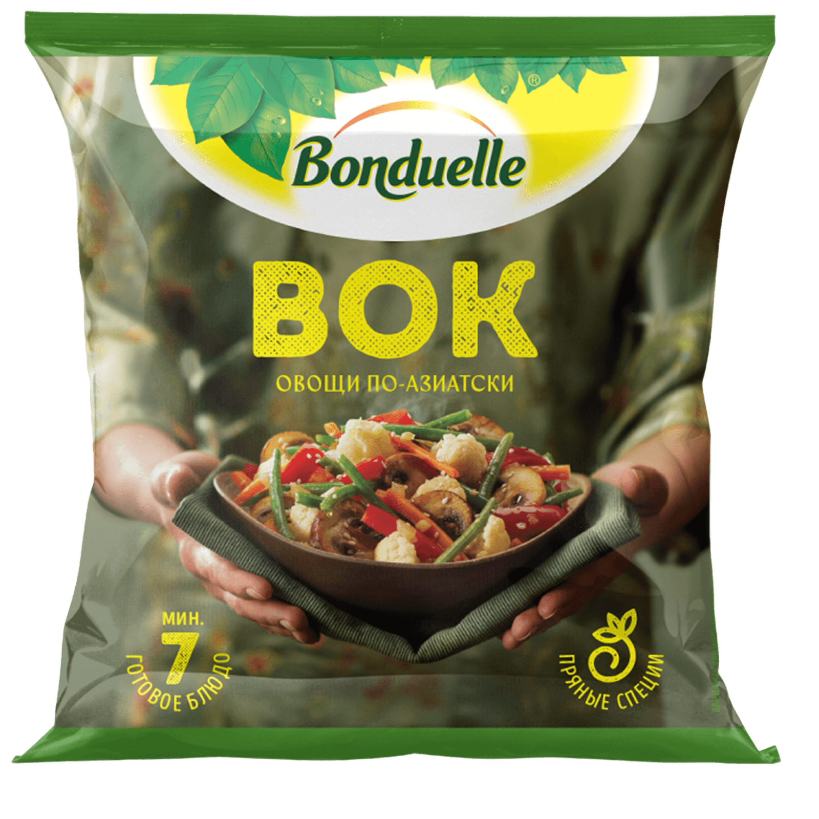 Состав: Перец сладкий, капуста цветная соцветия, морковь, фасоль стручковая, грибы шампиньоны резаные, лук репчатый, имбирь.