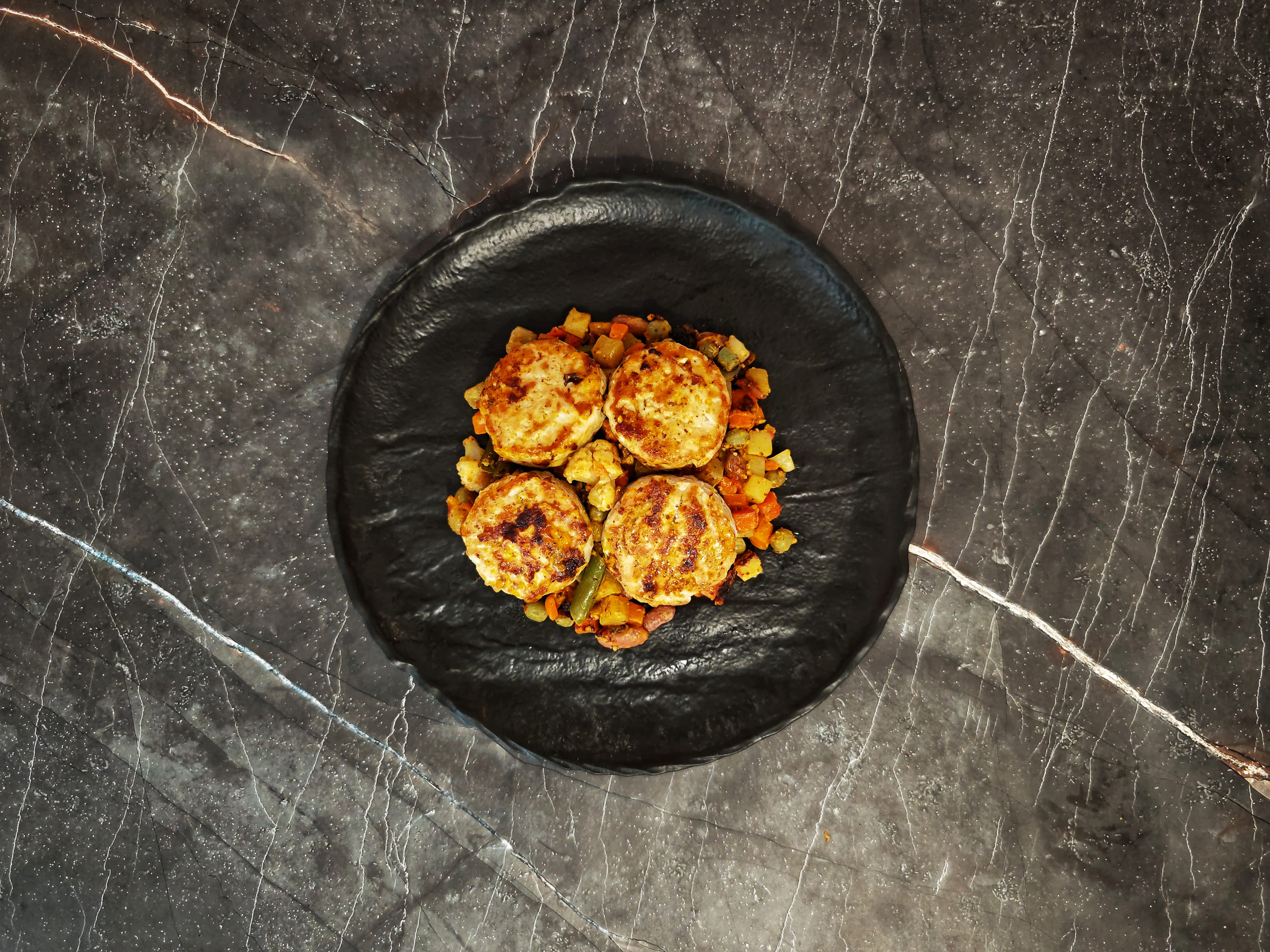Котлеты из фарша индейки с овощами в горчично-медовом соусе