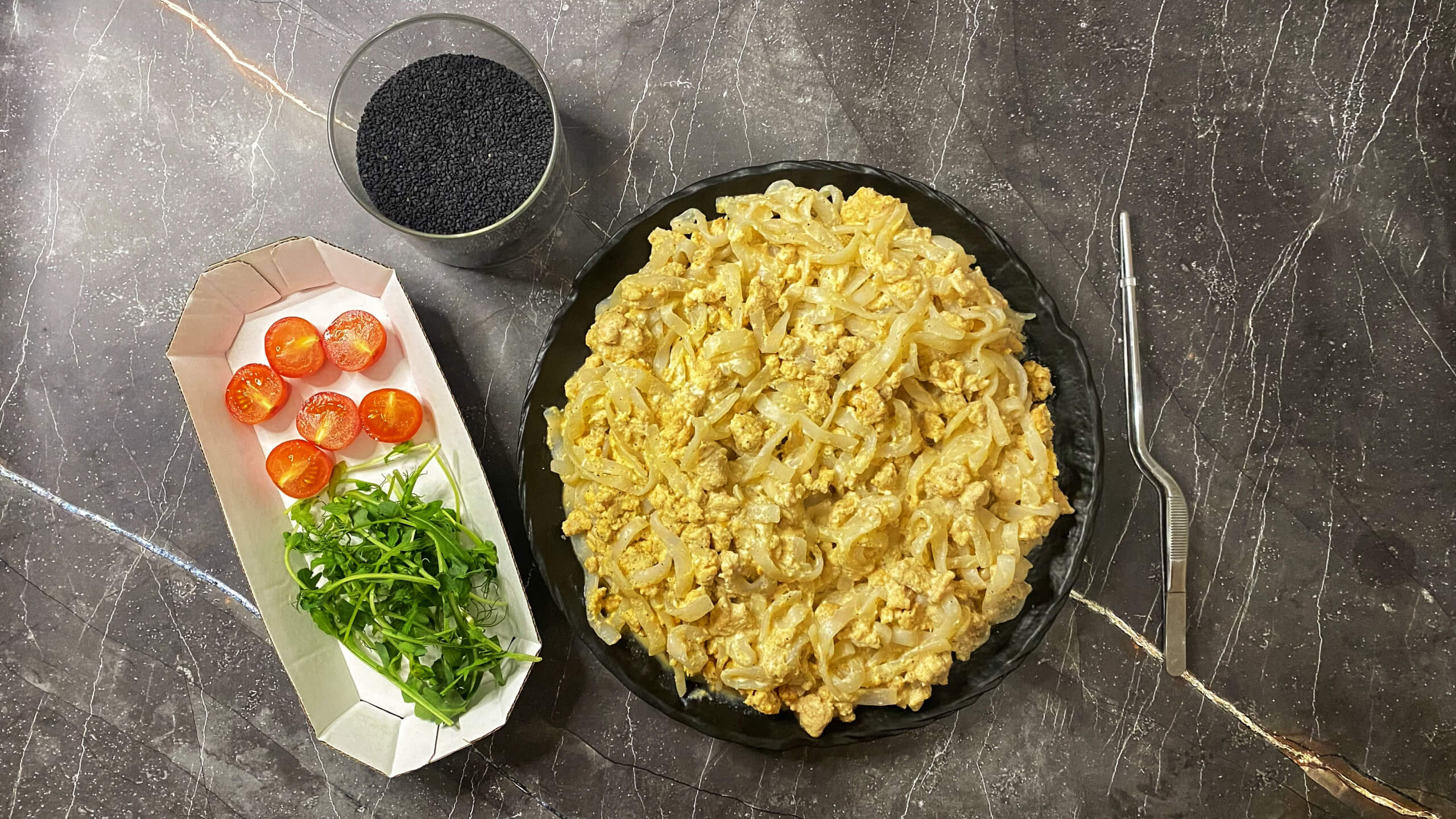 - Черный кунжут, микрозелень, черри — добавляет визуальную текстуру.