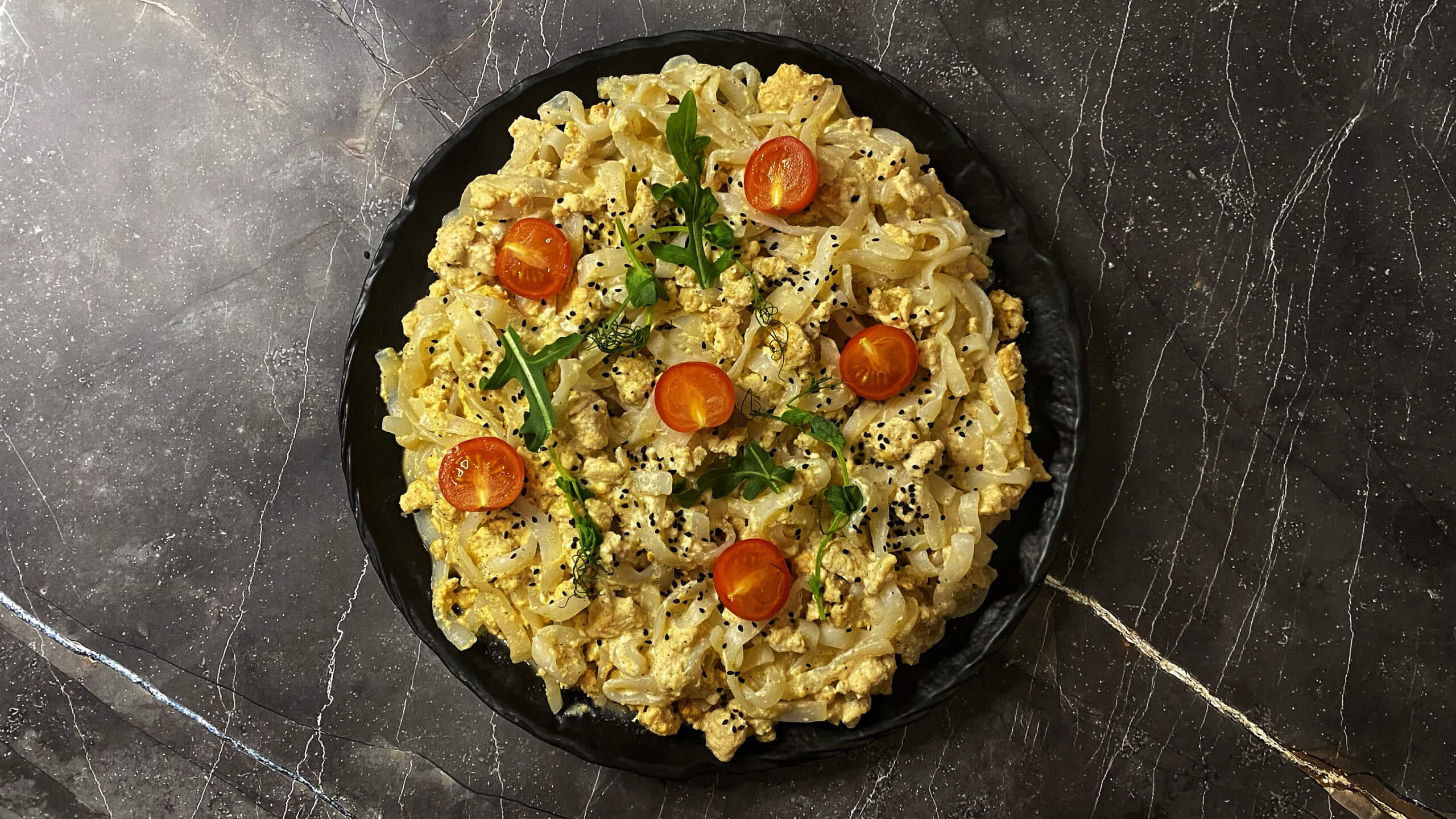 Wok из спагетти ширатаки с овощами и филе индейки