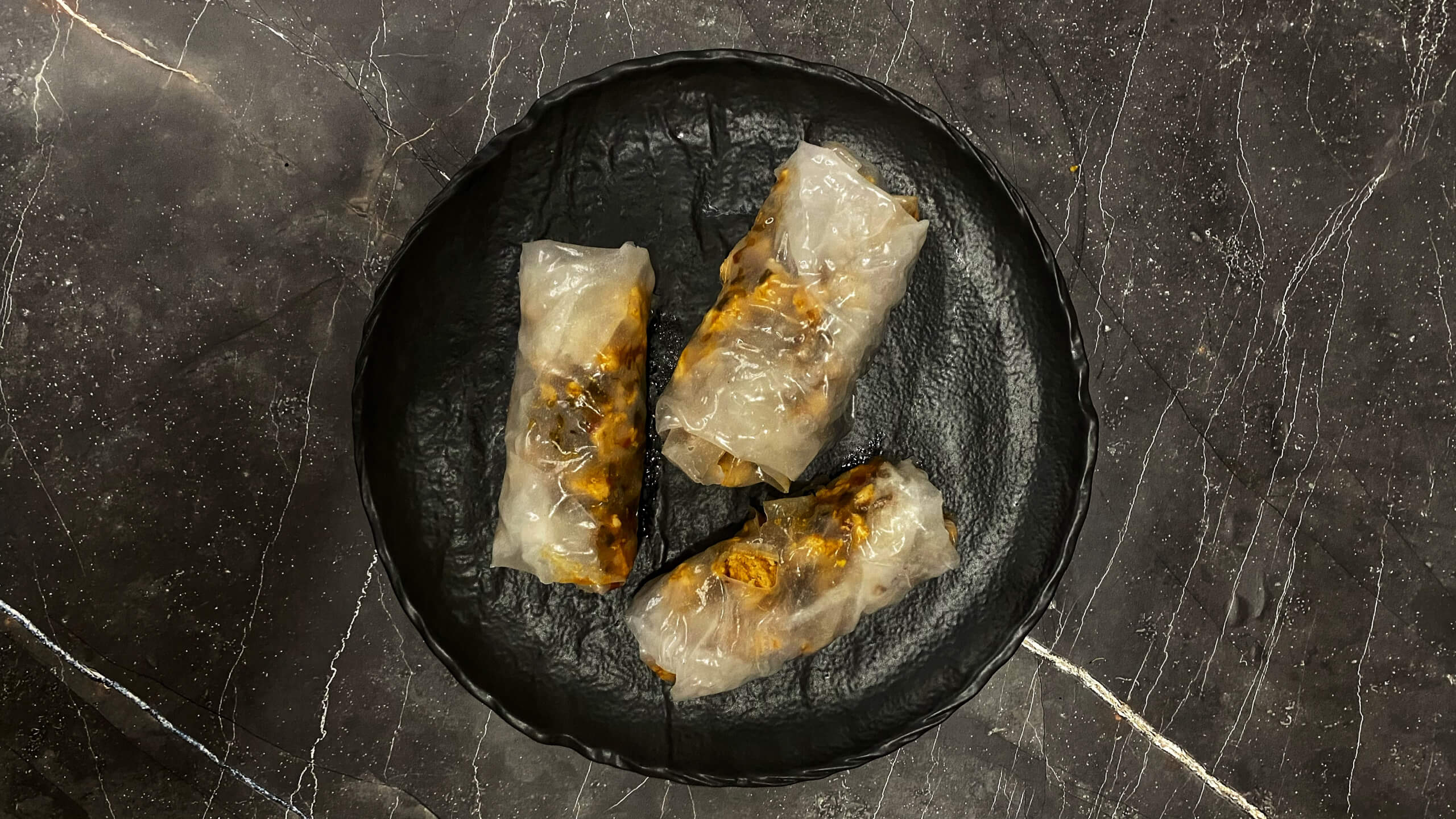 Легкое и вкусное блюдо, в котором нежный фарш из курицы завернут в тонкую рисовую бумагу. Пикантный соус Gherkin Relish Chili добавляет яркие нотки остроты и свежести, делая блюдо идеальным для закуски или легкого обеда.