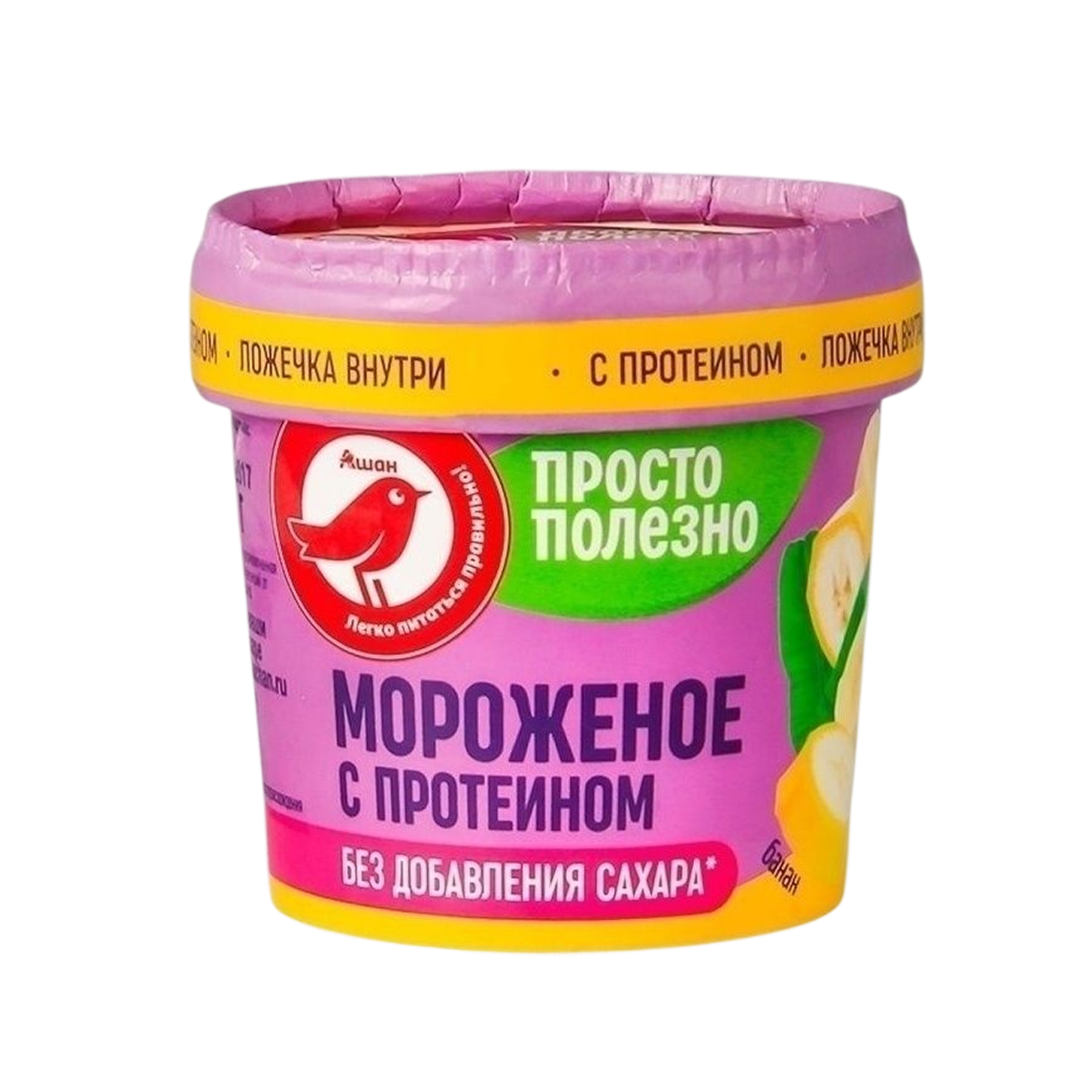 Протеиновое мороженое под брендом «Красная Птица« появилось в 2020 году в рамках расширения ассортимента здорового питания в сети Ашан. Продукт создан производителем АйсКро для доступного сегмента функциональных десертов. Банановый вкус выбран как наиболее популярный среди спортсменов и любителей фитнеса. Небольшая упаковка 75 граммов была разработана для контроля порций и удобства потребления.
