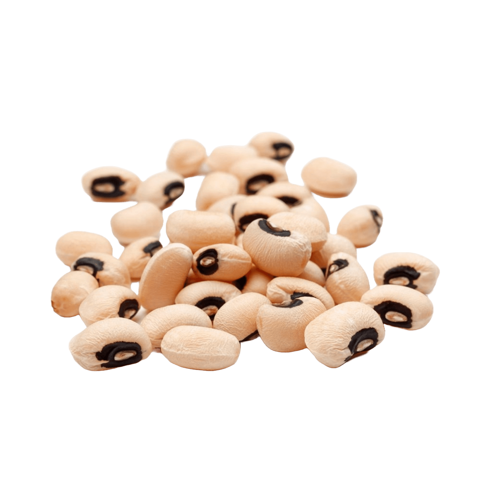 Бобовая культура с кремовыми семенами и характерным чёрным пятном у рубчика, известная как вигна. Отличается нежной текстурой и ореховым привкусом, быстрым приготовлением по сравнению с другими бобовыми. Богат растительным белком и сложными углеводами, сохраняет форму при термической обработке. Широко используется в африканской, азиатской и креольской кухнях. Подходит для веганского и вегетарианского питания.