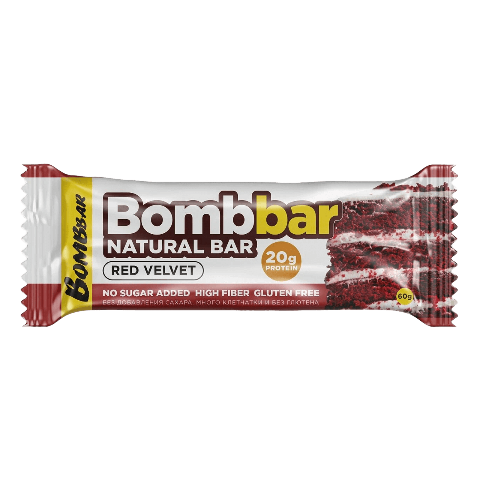 Протеиновые батончики появились в 1980-х годах как питание для спортсменов. Бренд Bombbar основан в России в 2016 году, специализируясь на полезных сладостях без сахара. Вкус «красный бархат« вдохновлен популярным американским десертом Red Velvet.
