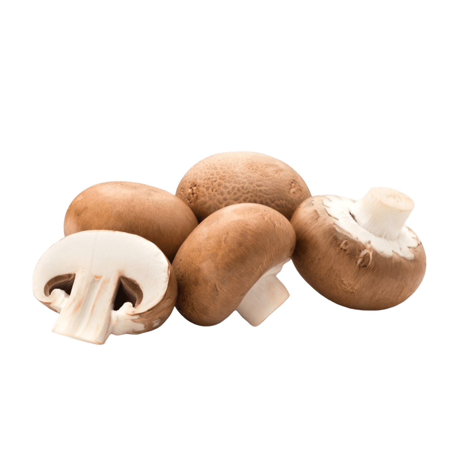 Популярные культивируемые грибы с плотной мякотью и выраженным ореховым вкусом. Отличаются от классических белых шампиньонов тёмно-коричневой шляпкой и более насыщенным ароматом. Широко используются в европейской и азиатской кухне благодаря универсальности приготовления. Содержат минимальное количество калорий при высокой питательной ценности. Подходят для жарки, тушения, запекания и употребления в сыром виде после обработки.