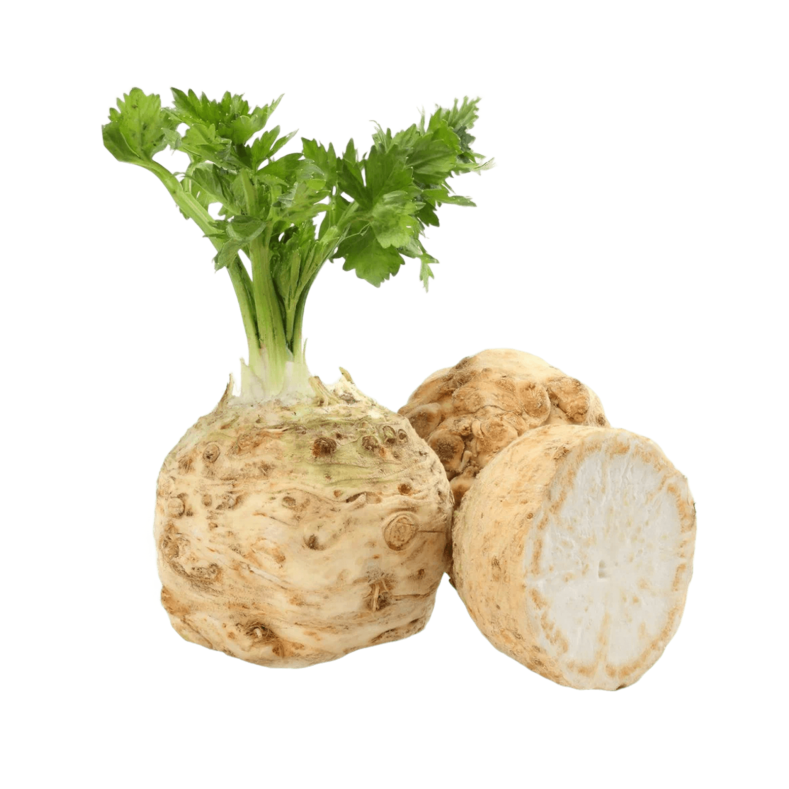 Корневой сельдерей – ценный источник минеральных веществ: калия, кальция, фосфора, магния и натрия. Богат витаминами группы В, витамином К, участвующим в кроветворении и защищающим кости от остеопороза, и витамином С, необходимым для укрепления сосудов. Содержит пищевые волокна, стимулирующие пищеварение, и эфирные масла, придающие корнеплоду характерный аромат. Отличается низкой калорийностью при высокой питательной ценности.
