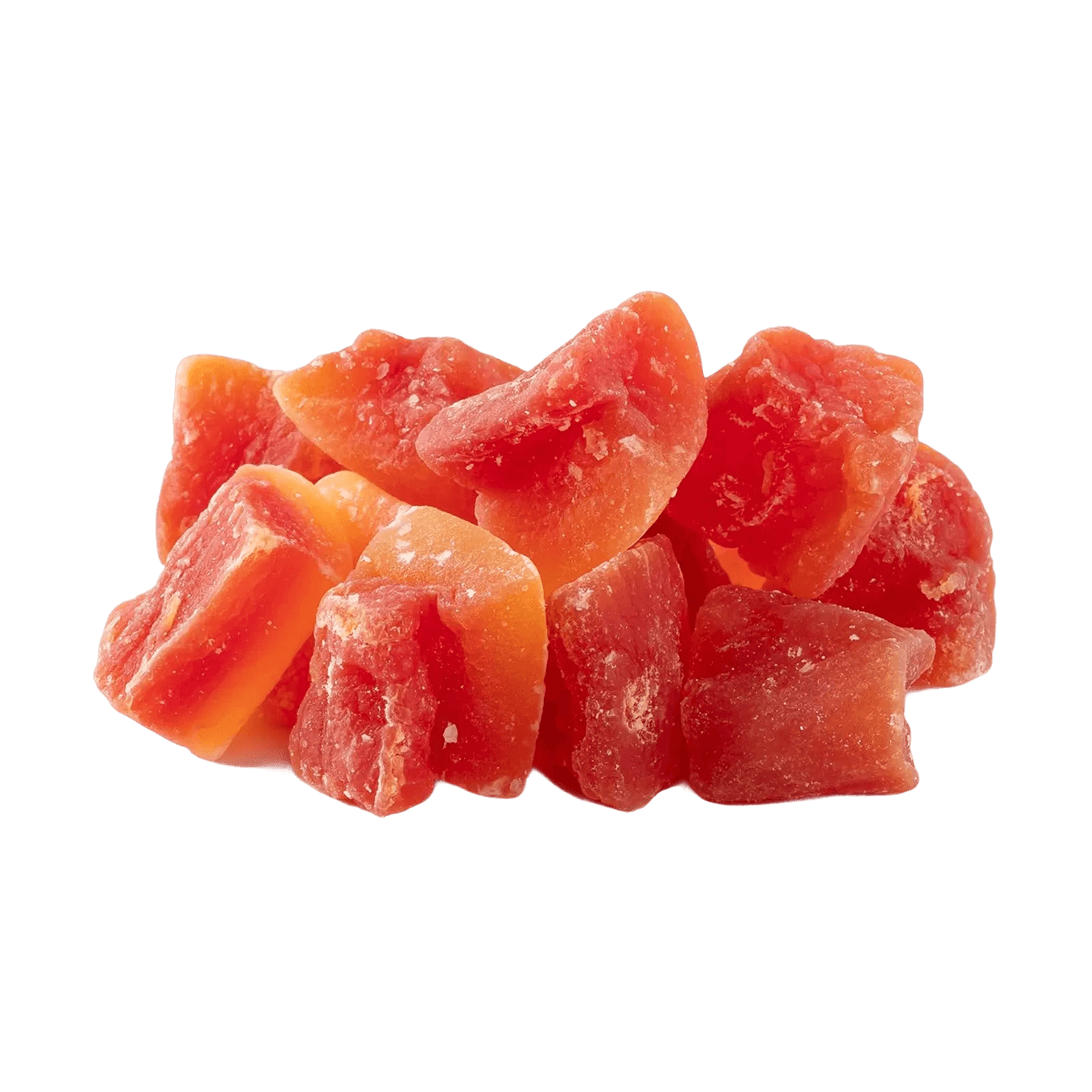 Натуральная папайя обычно менее яркого, бледного цвета, имеет менее сладкий вкус и может быть немного тверже. Цукаты ярко-оранжевые, очень сладкие и часто содержат добавленный сахар и красители.