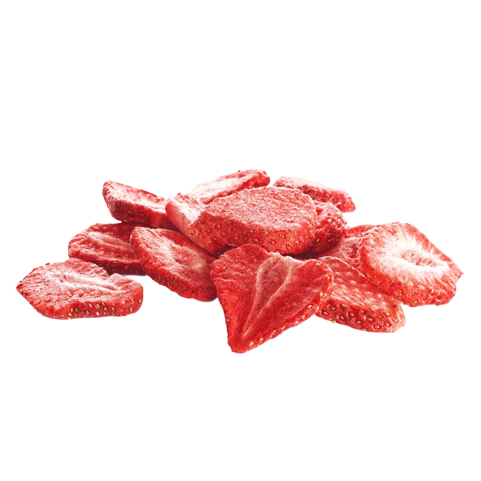 Сублимированная (лиофилизированная) клубника сушится при очень низкой температуре в вакууме, она легкая, хрустящая и лучше сохраняет витамины и цвет. Обычная сушеная клубника — мягкая, жевательная и может содержать больше сахара.