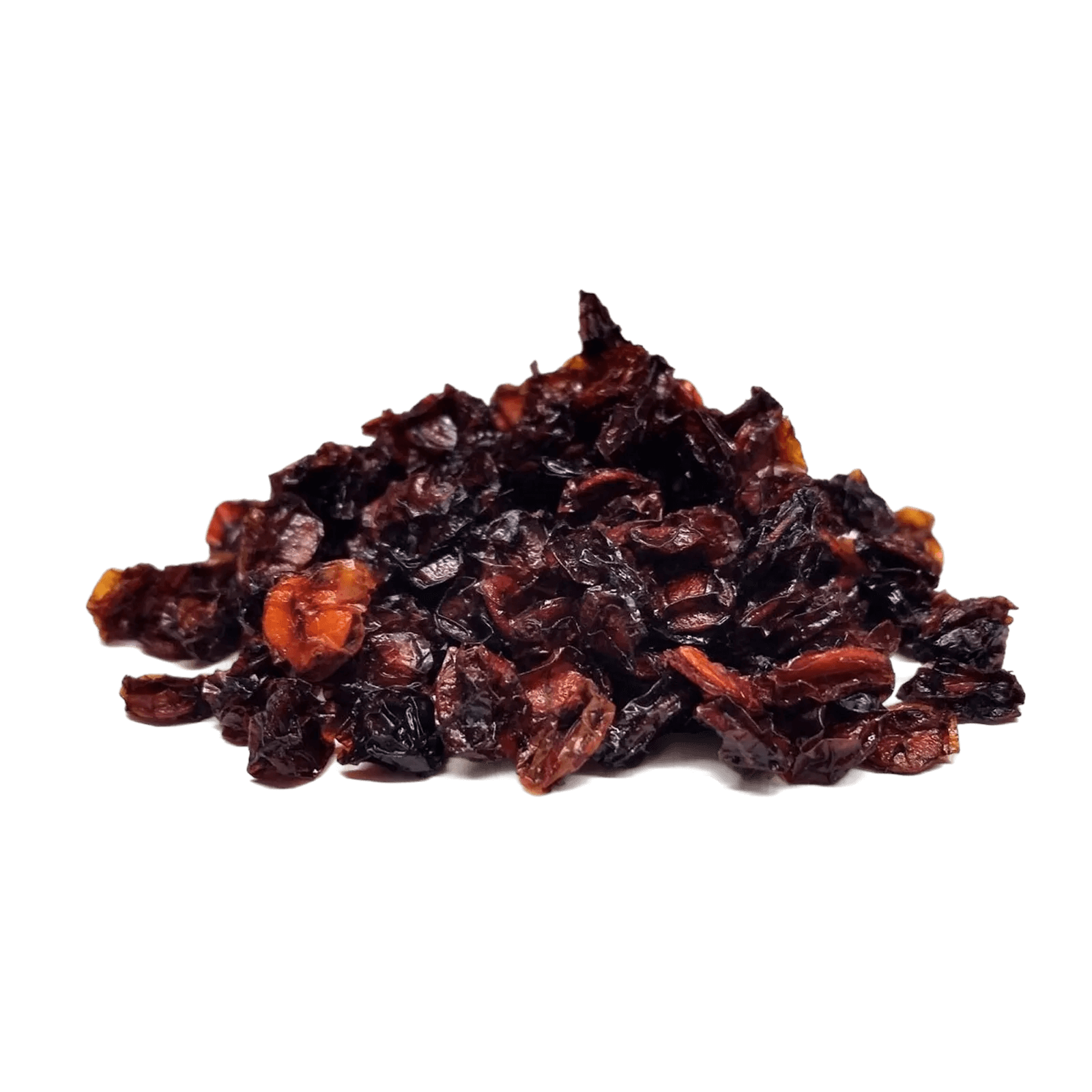 Сушеная калина обладает характерным горьковато-кислым, терпким вкусом с выраженной вязкостью и специфическим ароматом, который смягчается после замораживания или сушки. Вкус концентрированный, очень яркий и запоминающийся. Присутствие мелких семян добавляет текстуры. Общее впечатление — натуральное, ароматное сырье с богатым и сложным вкусовым букетом, которое требует умеренного использования и часто сочетается с медом или сахаром для баланса вкуса. Горечь обычно уменьшается после заваривания.