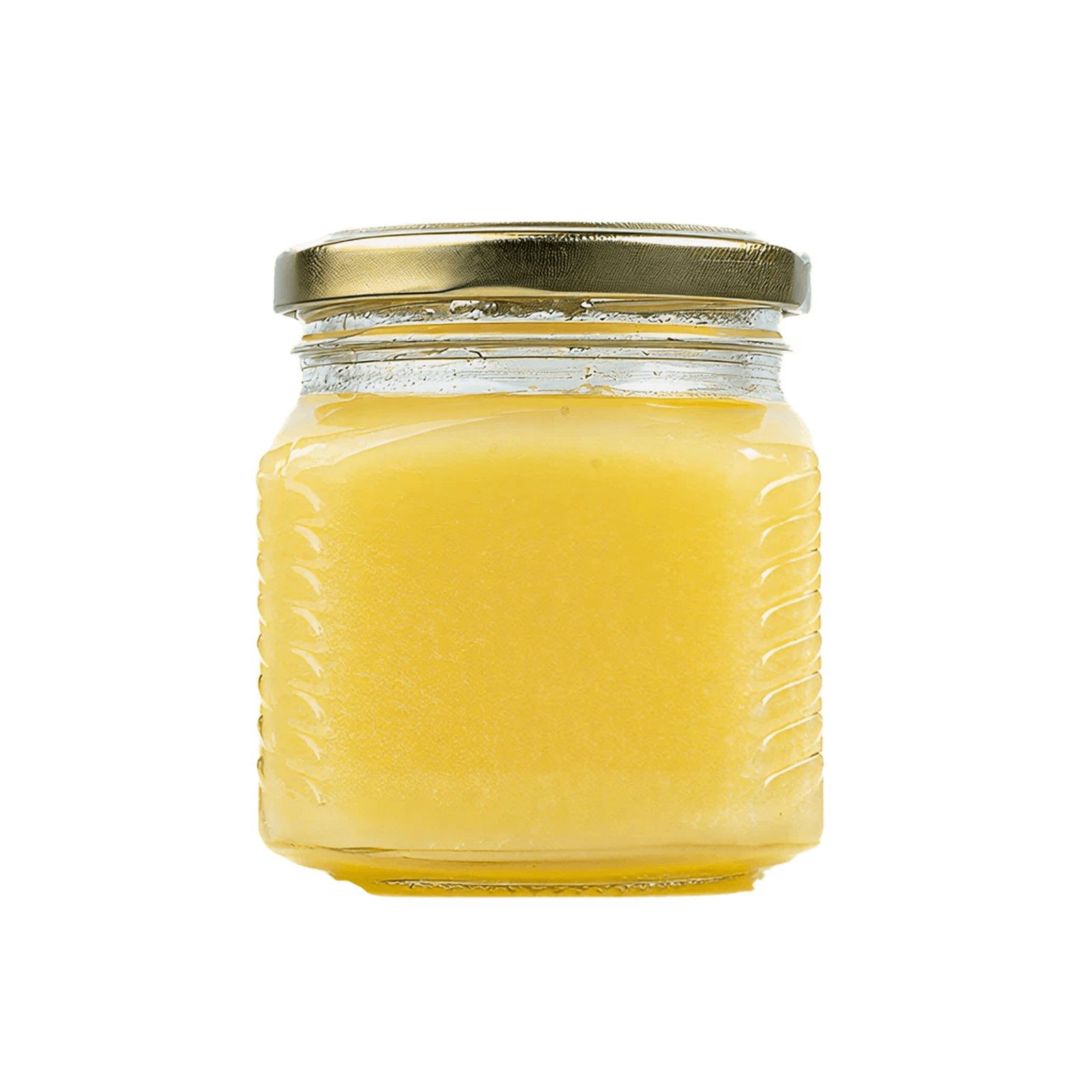 Топлёное сливочное масло, очищенное от молочных примесей и воды в процессе длительного нагревания. Обладает золотистым цветом, ореховым ароматом и высокой температурой дымления. Широко используется в аюрведической практике и азиатской кухне. Отличается длительным сроком хранения без охлаждения. Подходит для жарки, тушения и добавления в готовые блюда.