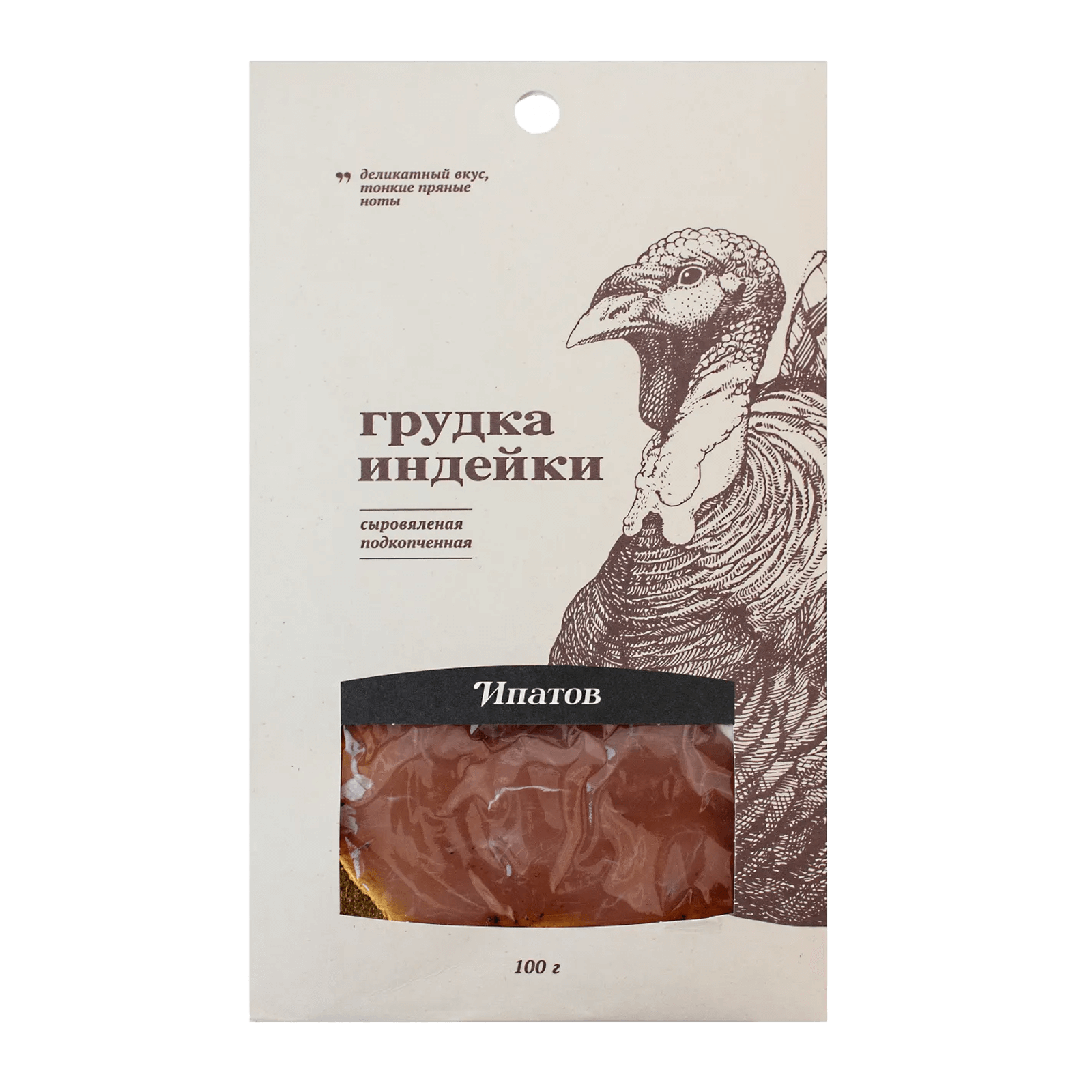 Вкус грудки насыщенный и пряный, с дымными нотками от подкопчения и ароматом сыровяленого мяса. Текстура плотная и волокнистая, благодаря сырокопчению. Послевкусие оставляет приятную теплоту специй с легкой солоноватостью. Аромат богатый, мясной с травяными и пряными оттенками. Общий профиль можно описать как изысканный и аутентичный, напоминающий традиционные мясные деликатесы.