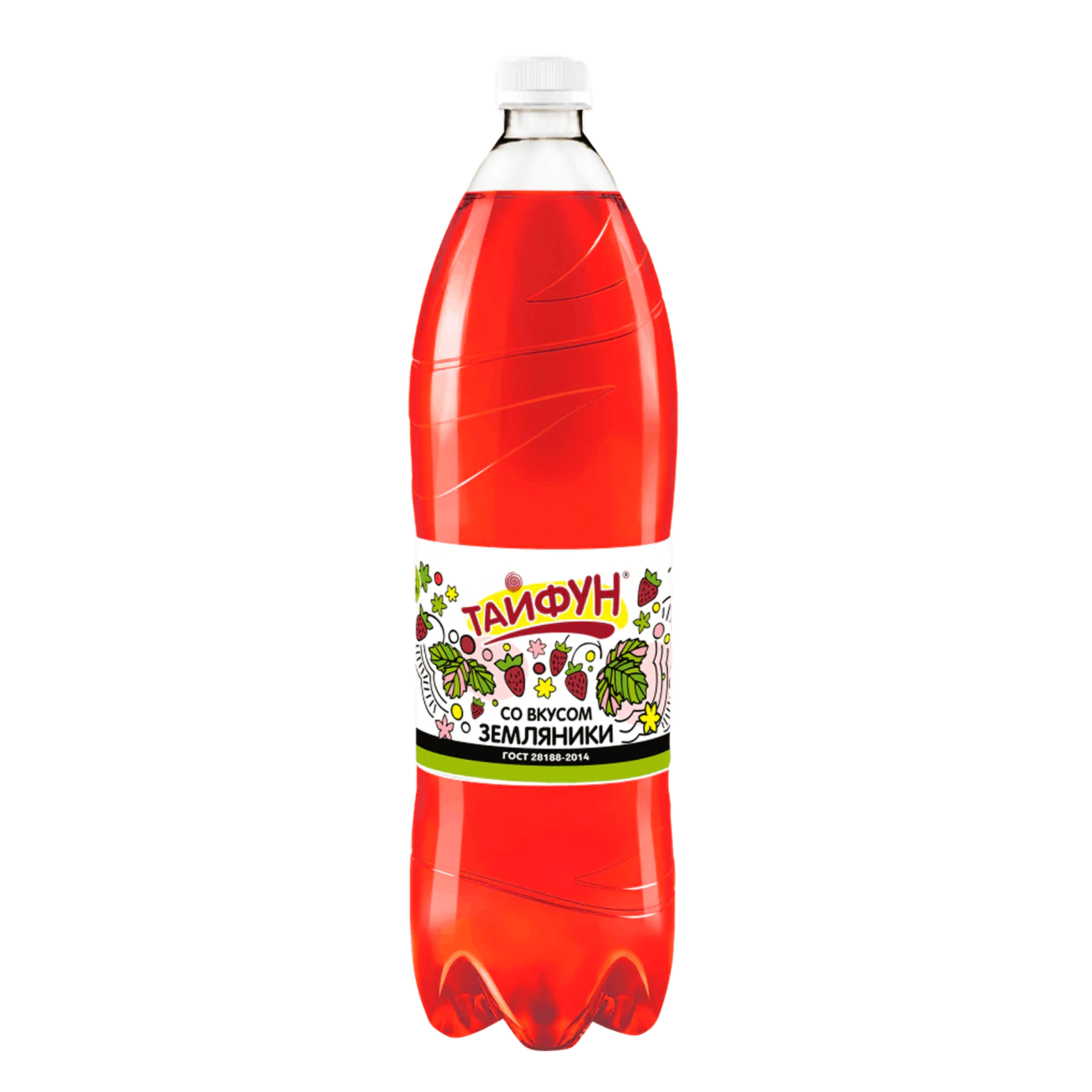 Напиток производится под брендом «Тайфун«, известным своими ностальгическими вкусами. Название «Земляника« отсылает к популярному в советское время ягодному напитку, создавая ассоциации с летними каникулами в деревне. Продукт разработан как часть линейки низкокалорийных газировок, сохраняющих традиционные вкусы. Особенностью напитка является воссоздание характерного земляничного профиля, знакомого многим с детства.