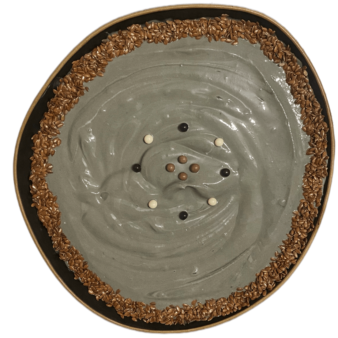 - Цвет: изначально белый, немного бежевый от топпинга. Стал более темным после добавления черного пищевого красителя, однако не удалось достичь полностью черного цвета, скорее серый.