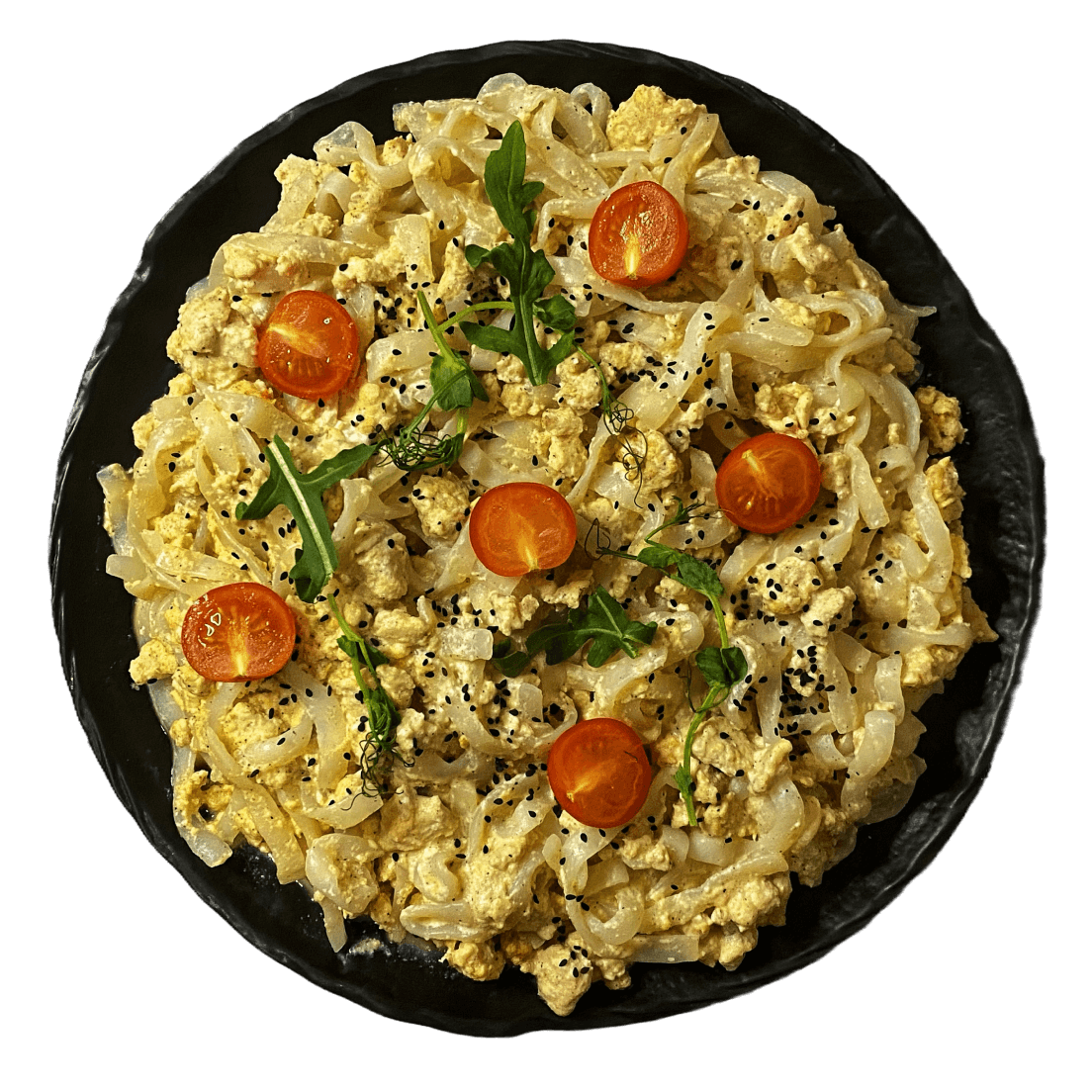 Wok из спагетти ширатаки с овощами и фаршем из индейки