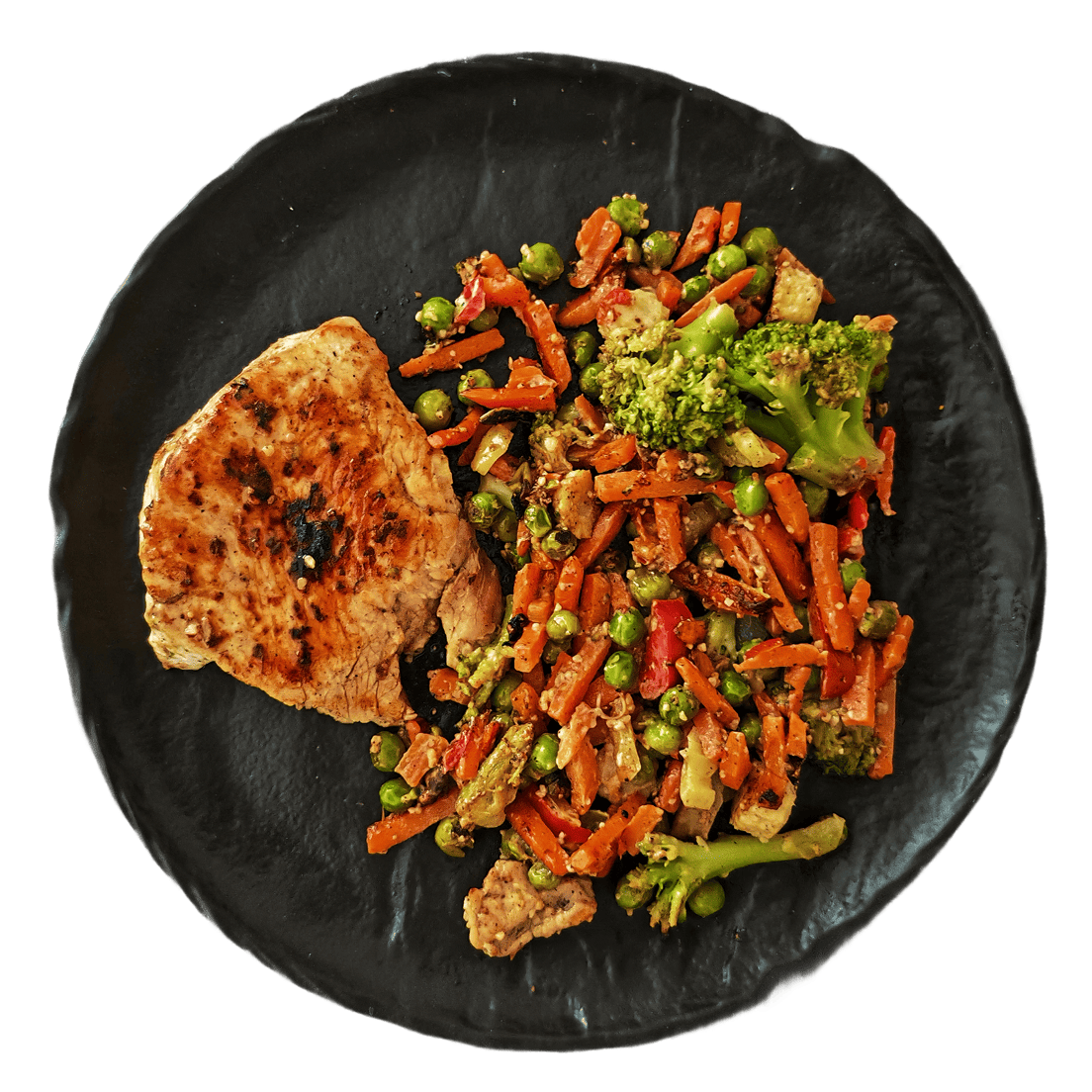 Стейк из индейки с овощами в остром соевом соусе