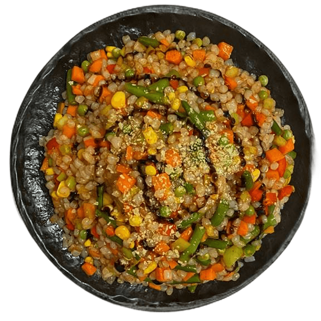 Wok из риса ширатаки с овощами и пресервами