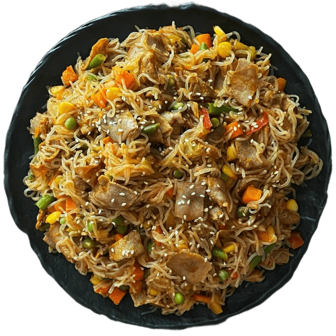 Wok из спагетти ширатаки с овощами и филе индейки