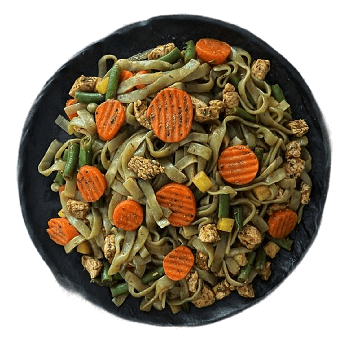Wok из спагетти ширатаки с овощами и филе индейки
