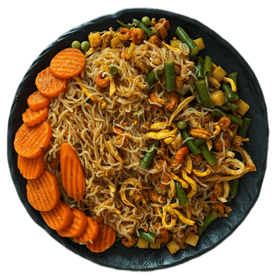 Wok из спагетти ширатаки с овощами и филе индейки