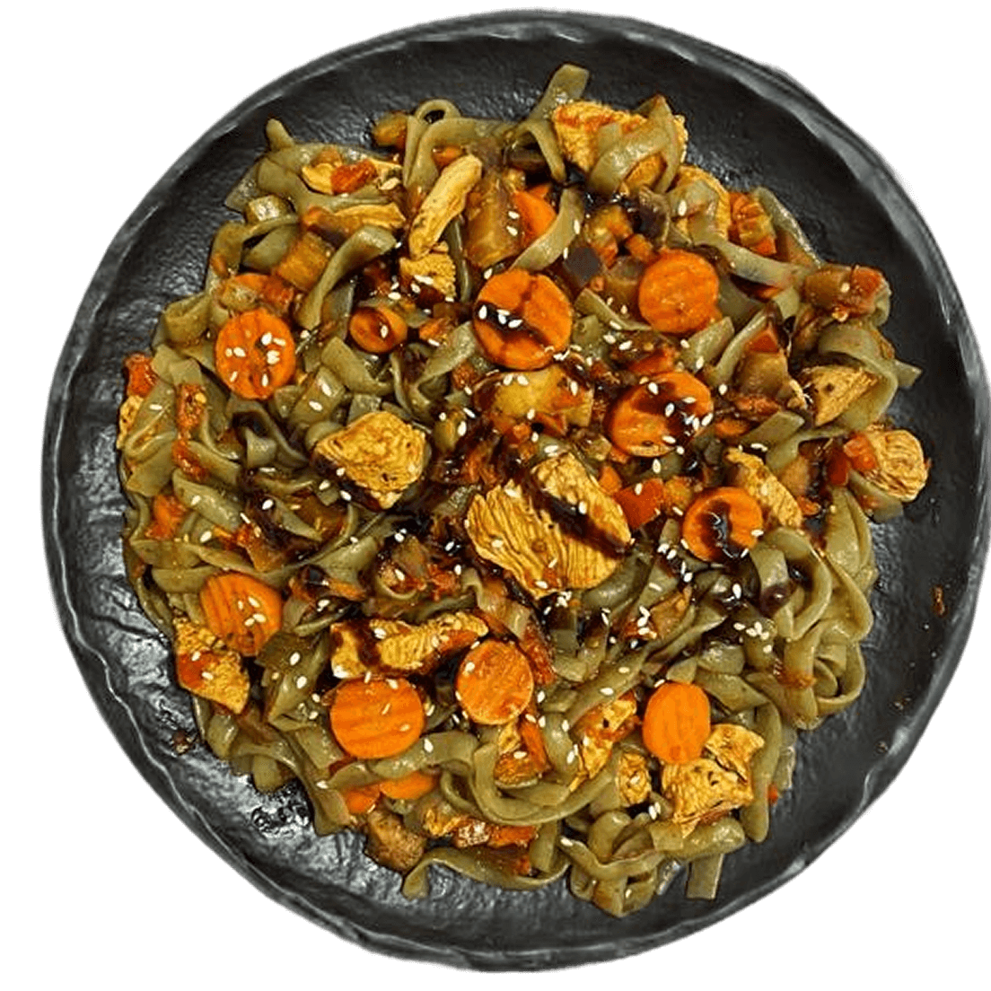 Wok из спагетти ширатаки с овощами и филе индейки