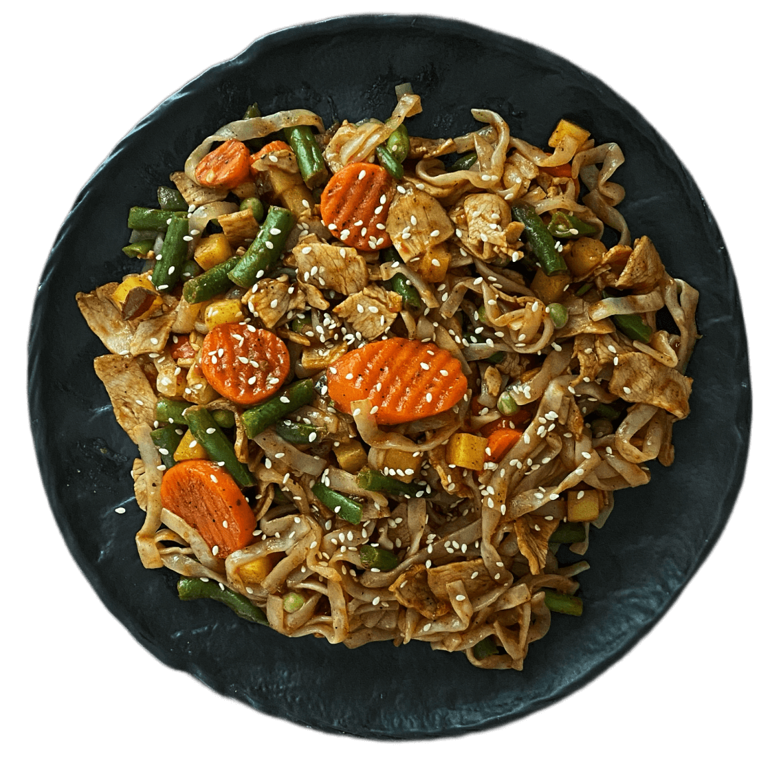 Wok из спагетти ширатаки с овощами и филе индейки