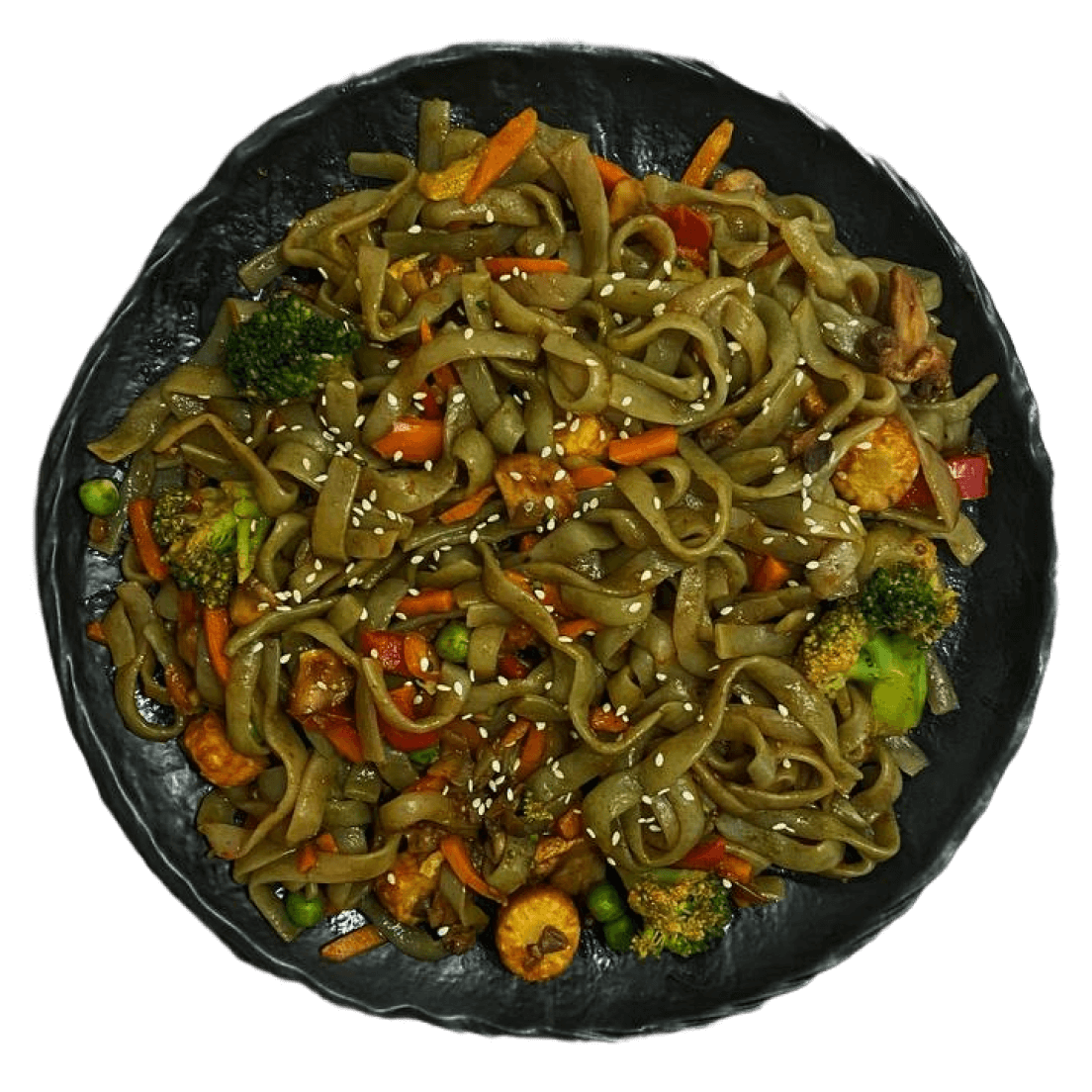 Wok из фетучини ширатаки с овощами и опятами