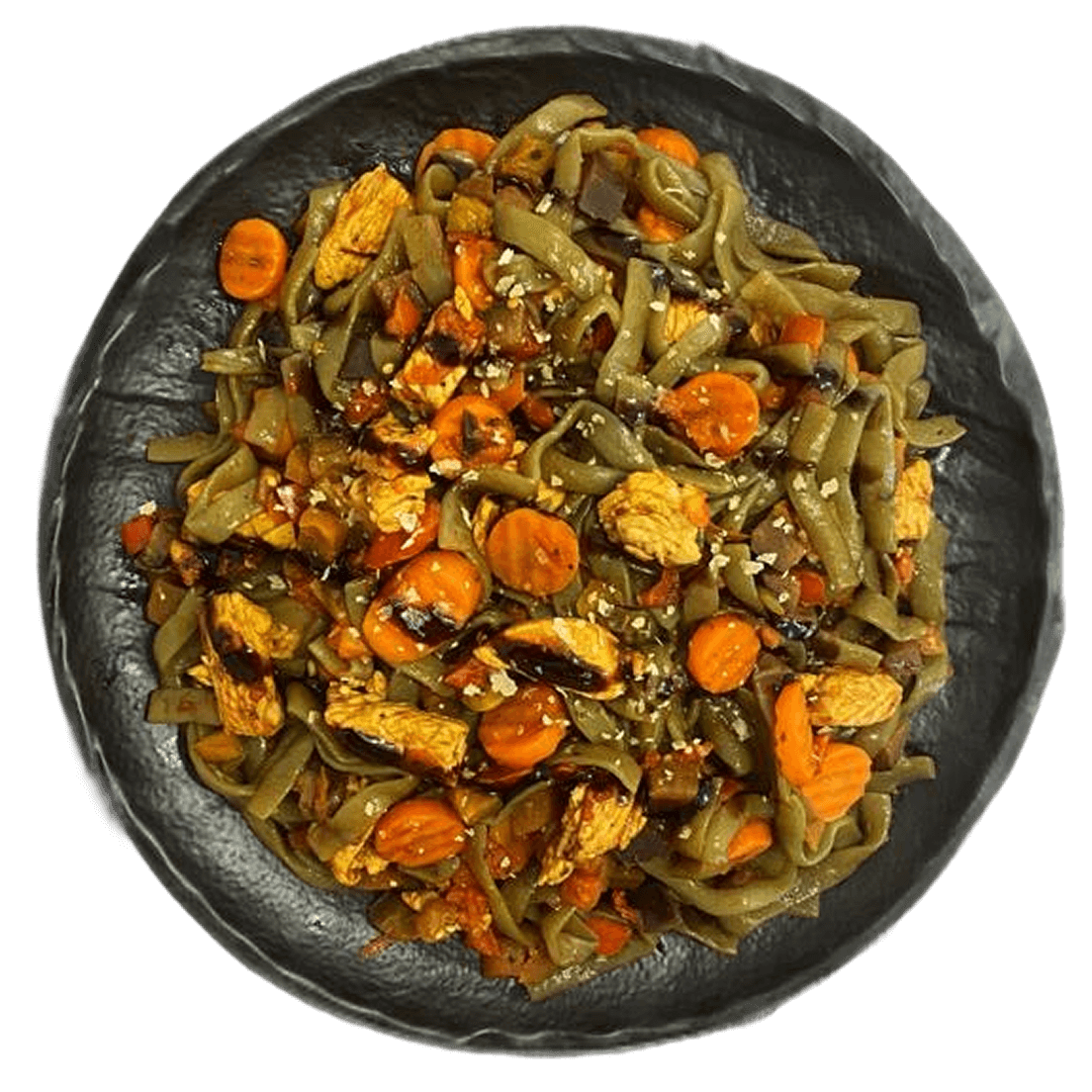 Wok из фетучини ширатаки с овощами и мясной нарезкой